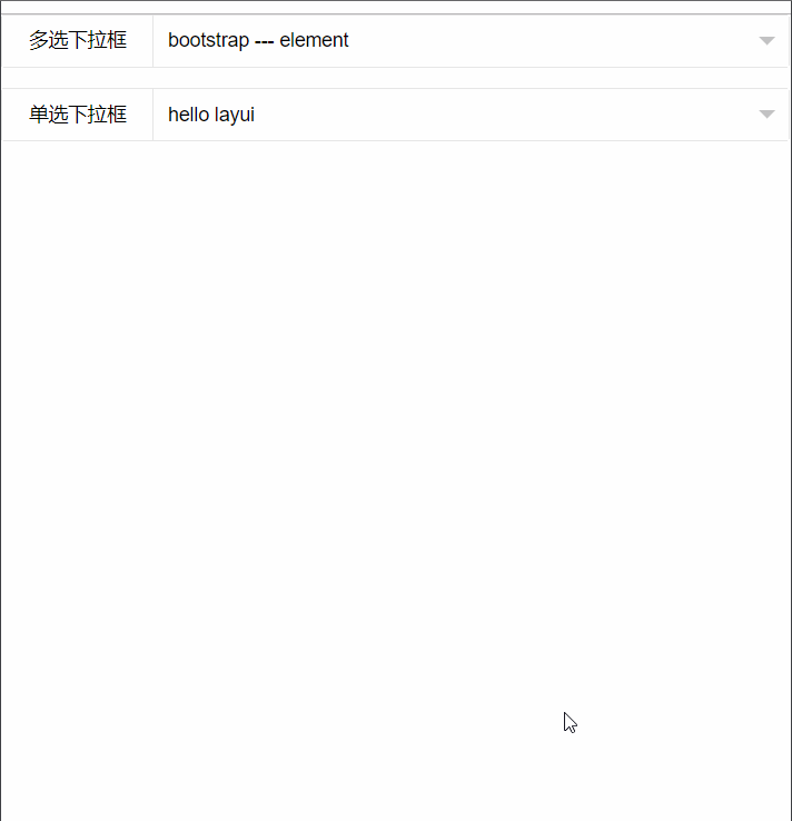 基于layui框架的下拉框加强版,初始版本具备基础数据展现、异步加载、数据回调、异步返回数据自定义、默认选项等功能,支持单选和多选。内部使用 form 和 jQuery 模块。